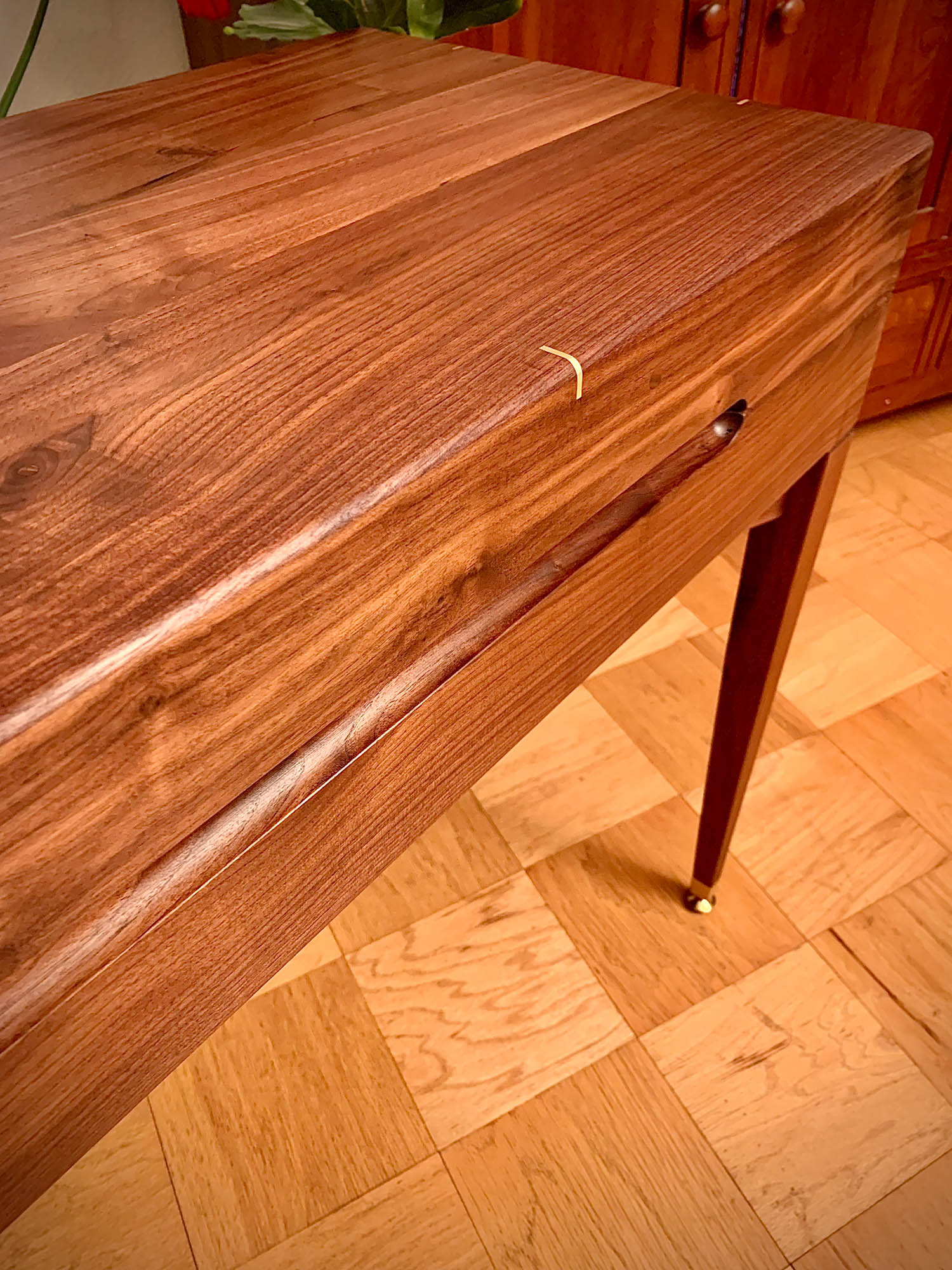 The casework features waterfall joints supported by brass inserts.