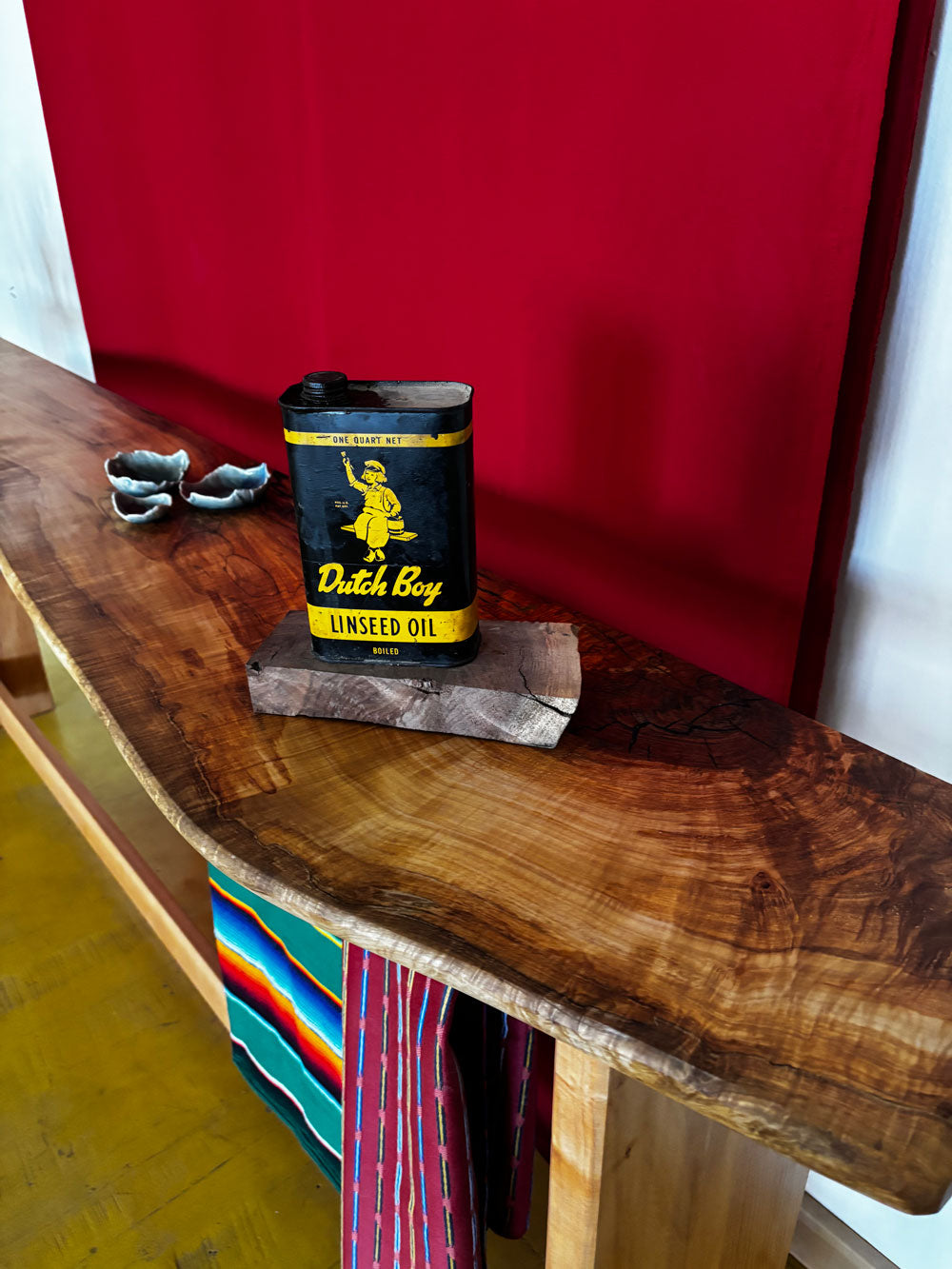A study in verticality and grain, the Tall Sycamore Console Table stands as both sculpture and surface. Crafted from a single slab of spalted sycamore, its undulating live edge preserves the natural shape of the wood, while the patterns of spalting create a subtle, mesmerizing interplay of earthy hues and delicate veining.